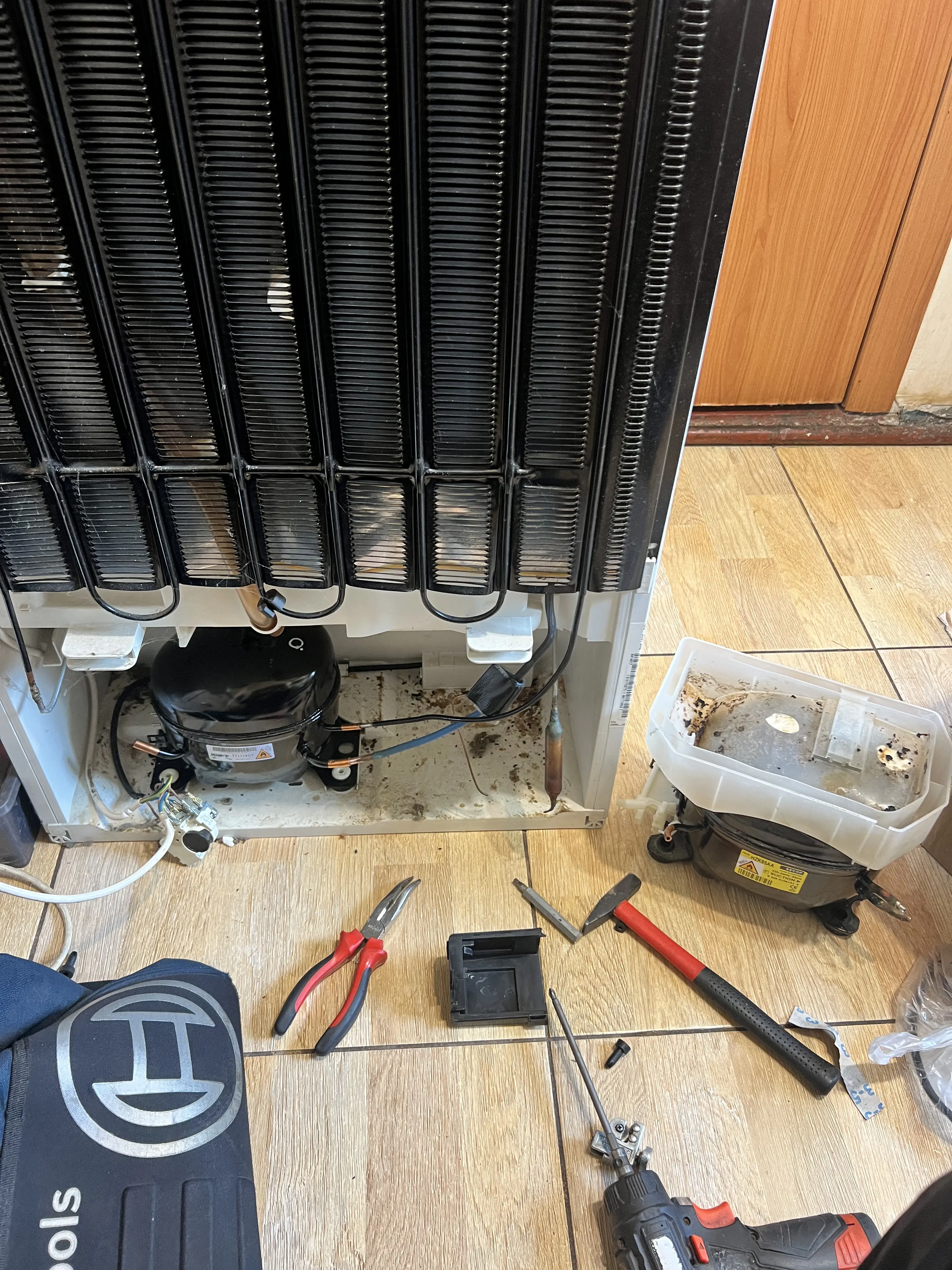 Холодильник Liebherr перестал нормально холодить, и владелец обратился в сервис «Холодоктор» по адресу в Малиновском районе Одессы. В ходе диагностики выяснилось, что штатный компрессор уже не развивает нужное давление, из-за чего система не выходит на рабочий режим и температура в камерах постоянно завышена.