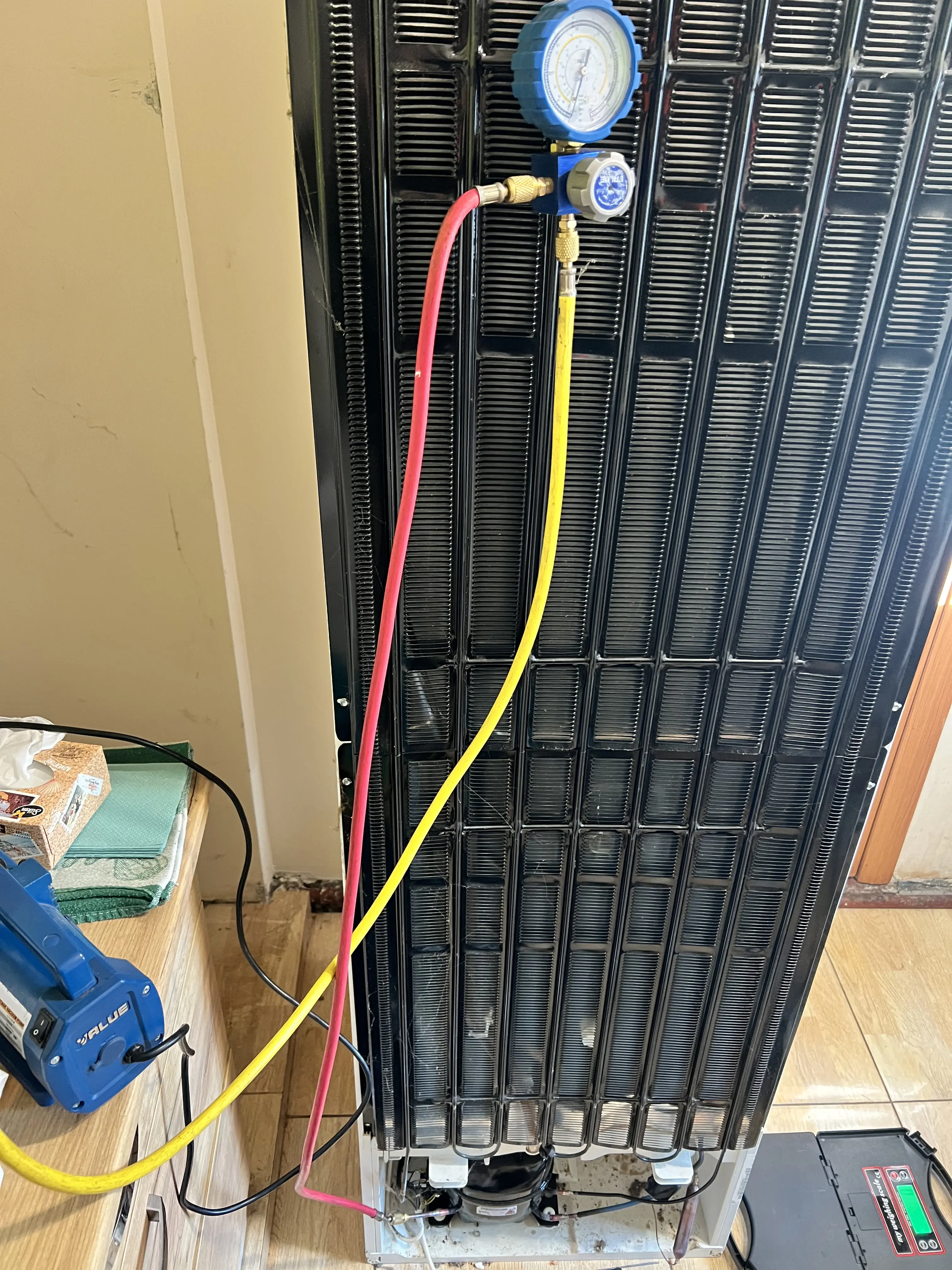 - провакуумировали контур и заправили холодильник фреоном по нормам производителя.